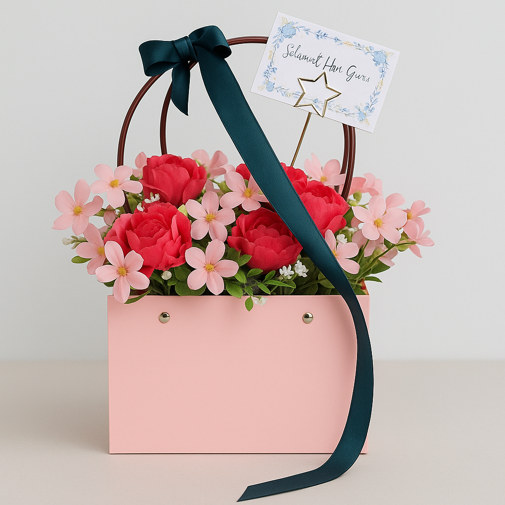 Berikan sentuhan cinta dan keindahan dengan rangkaian bunga artificial premium dalam box cantik berwarna pink, lengkap dengan pita elegan dan kartu ucapan. Sangat cocok untuk kado wisuda, ulang tahun, anniversary, hari guru, atau sekadar memberi kejutan manis!