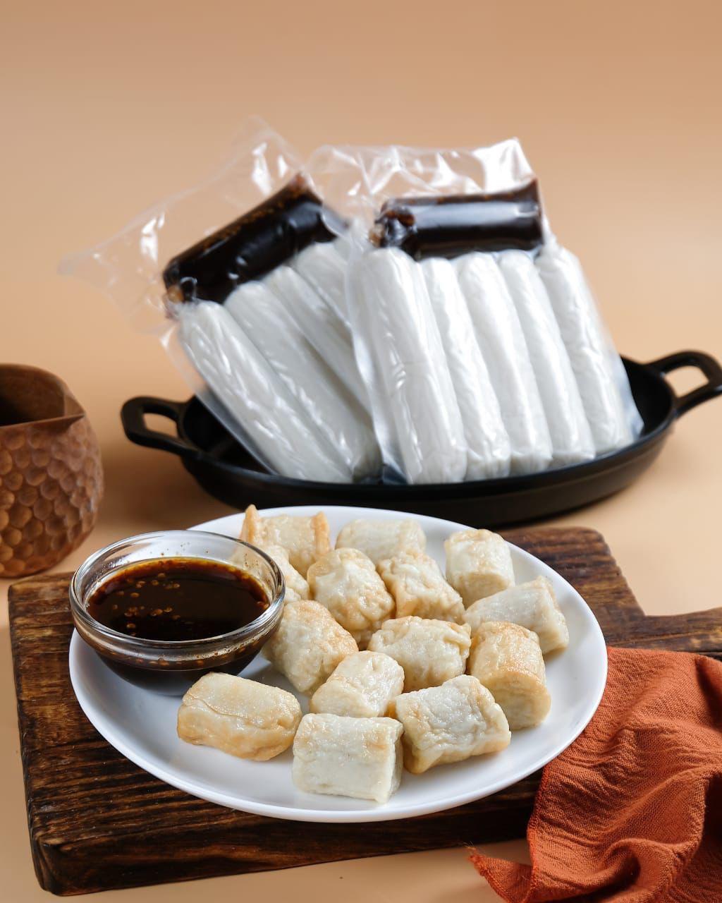 Pempek dengan tekstur yang lembut terbuat dari bahan dasar putih telur yang dominan tapi tetap menggunakan ikan sebagai campuran.
